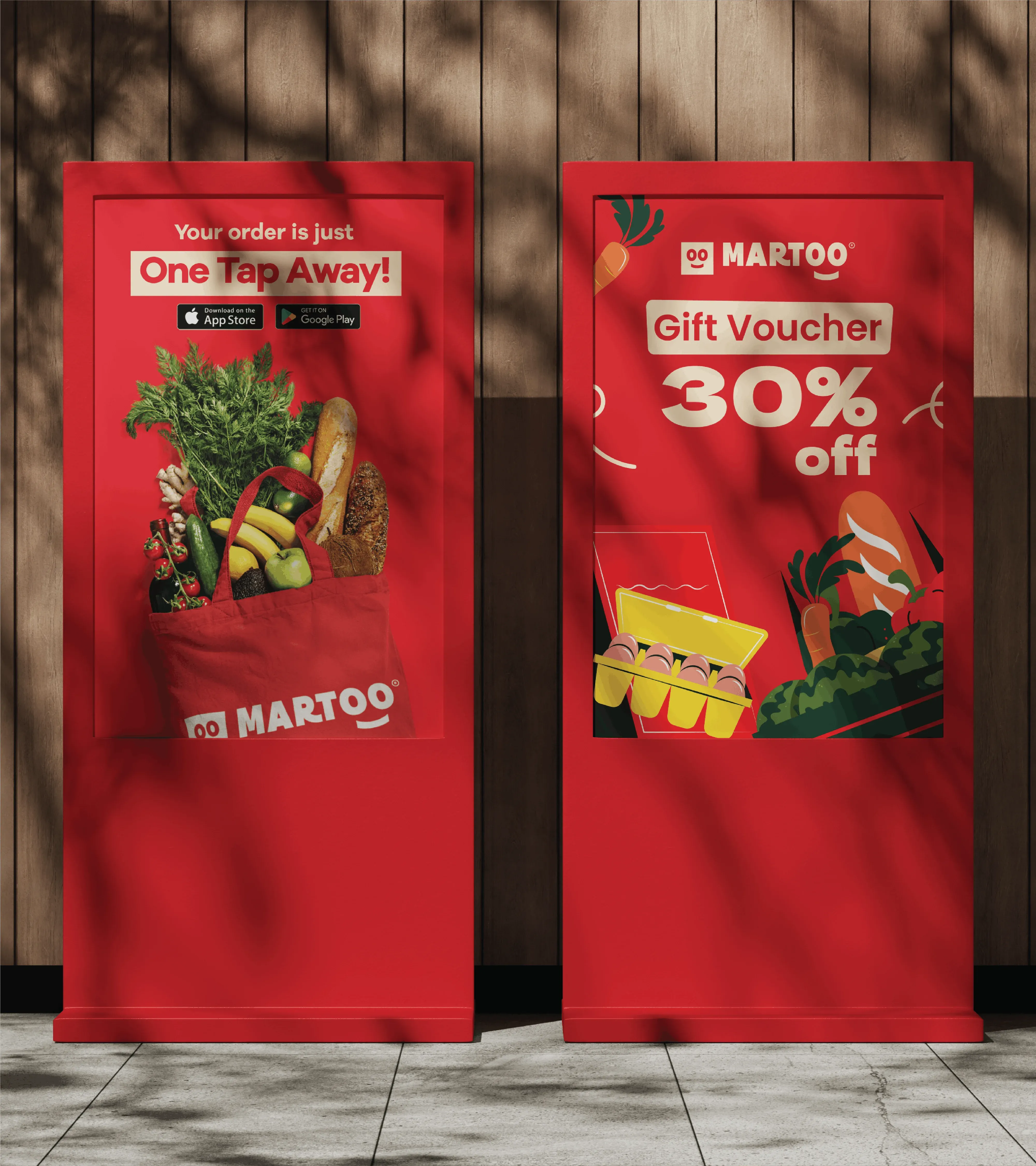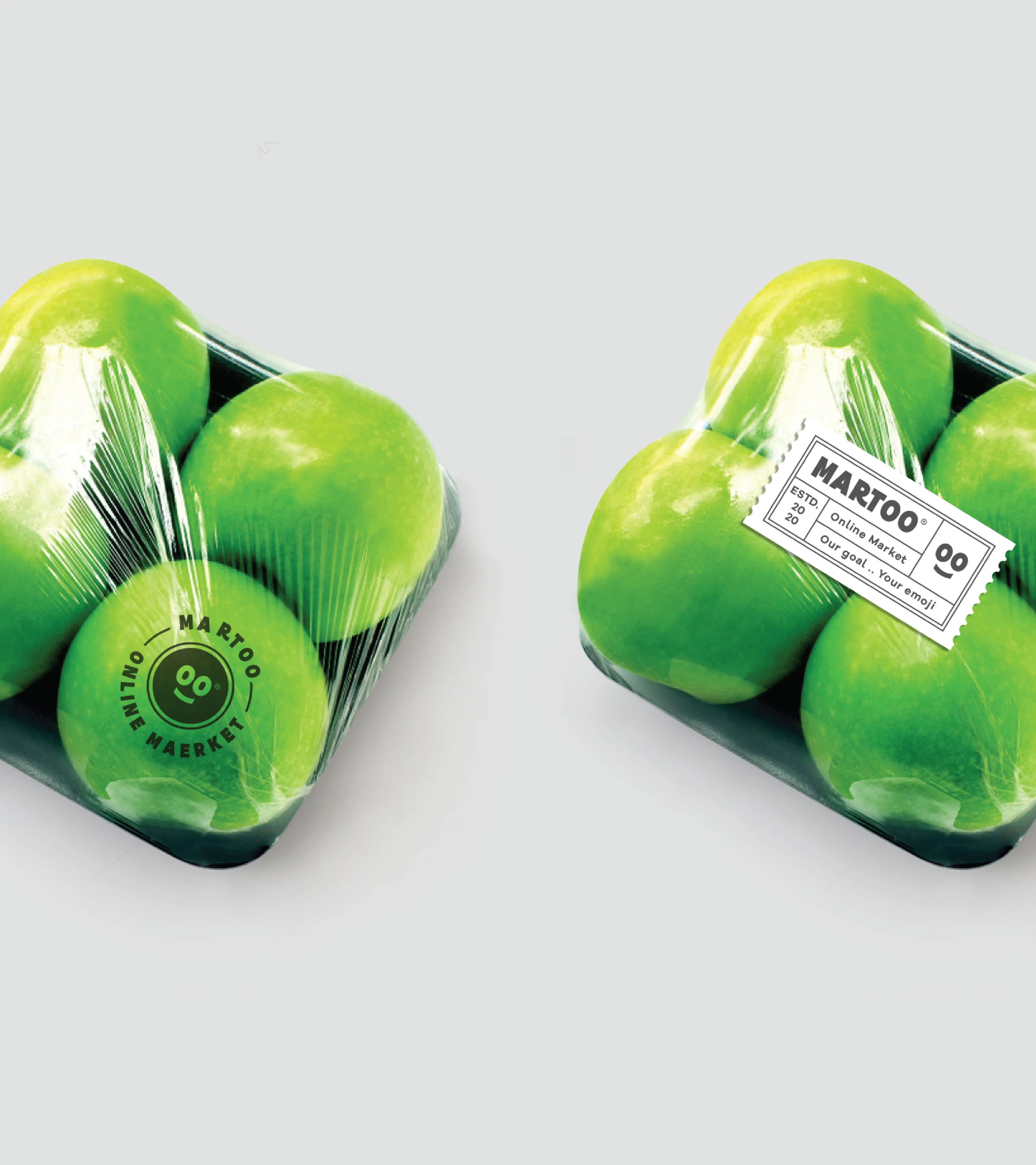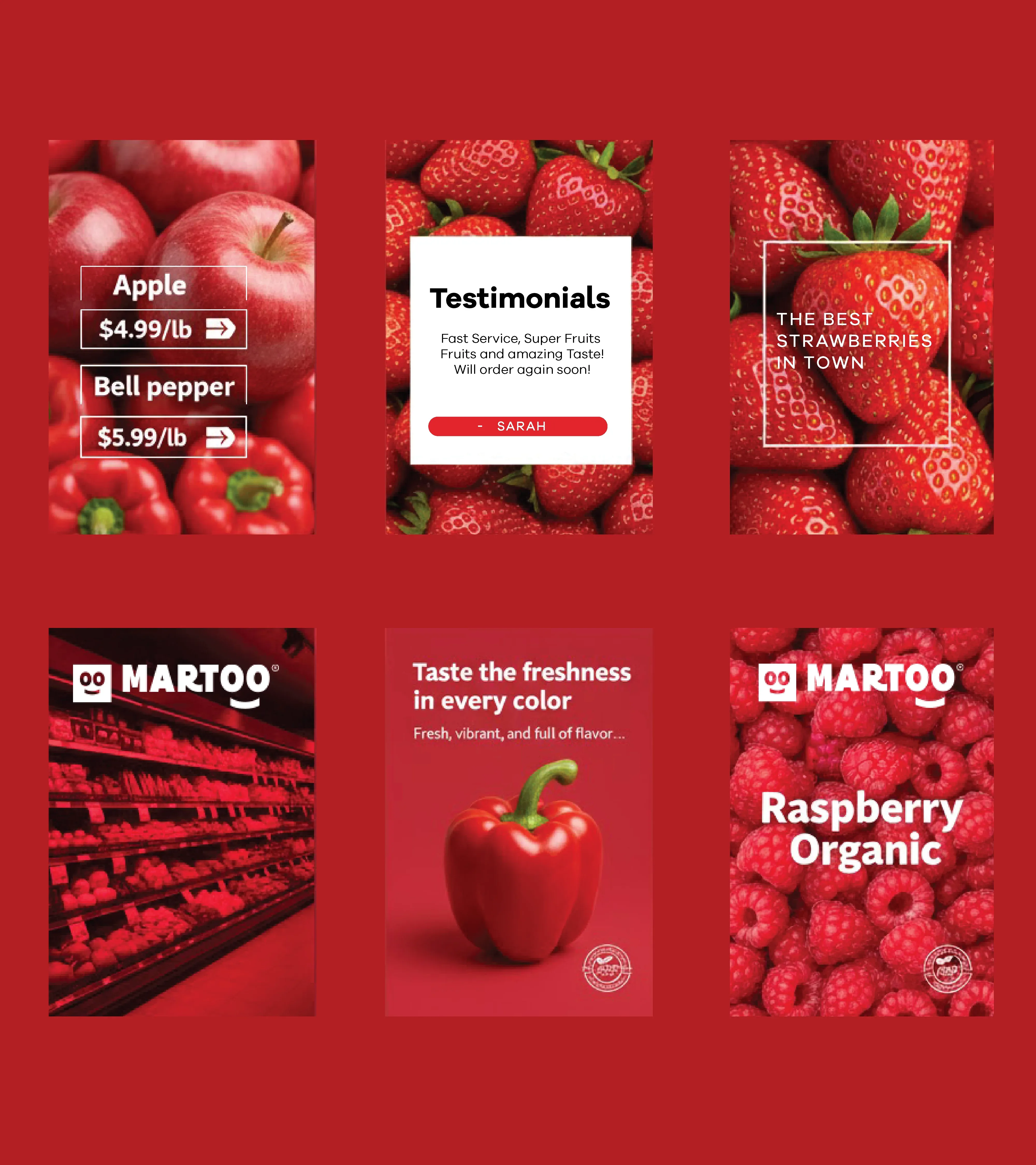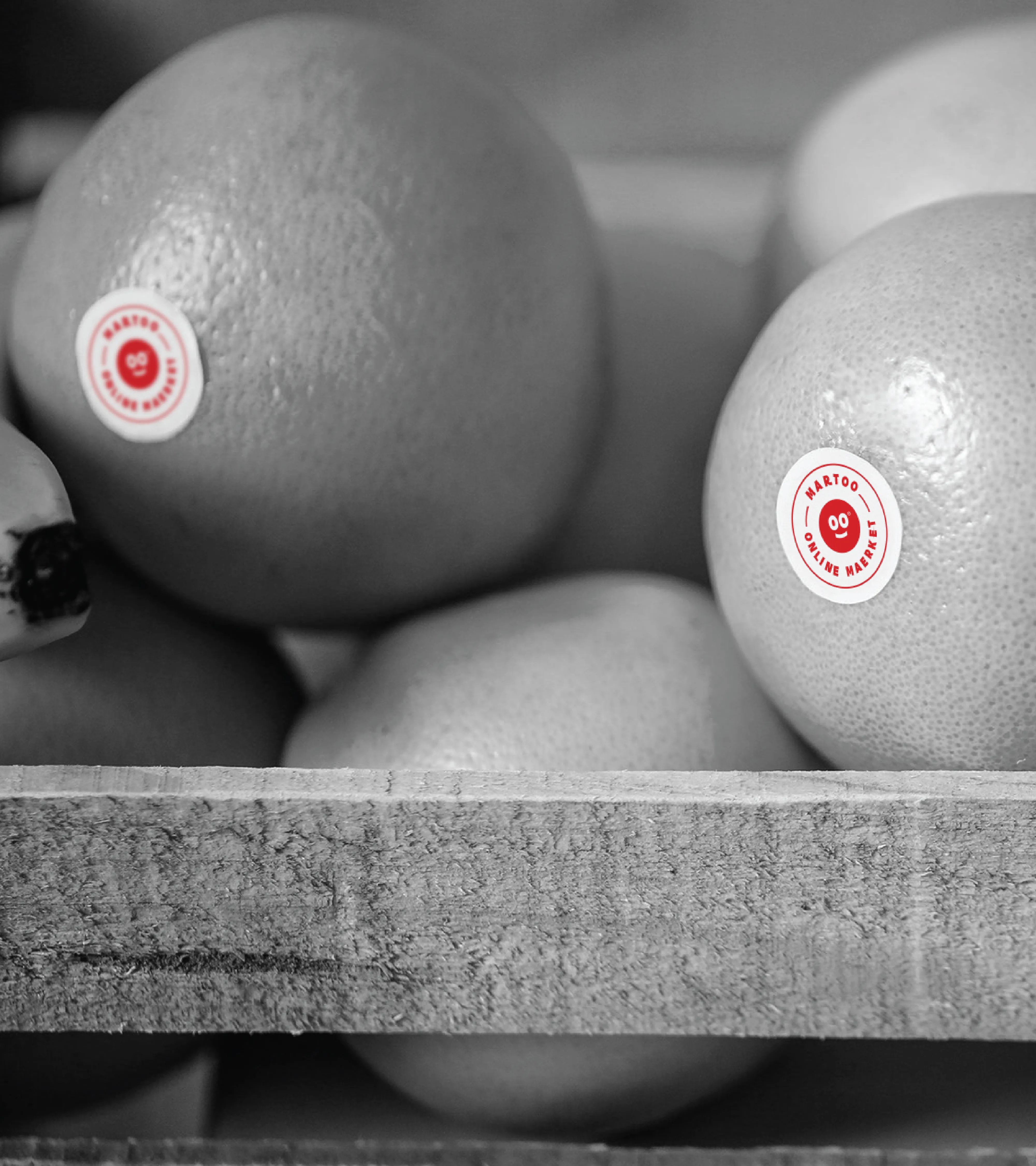 Martoo Red anchors the logo's primary expression, channeling freshness, energy, and appetite appeal in a single, ownable hue. Where the environment demands restraint, monochrome black and white versions step in to maintain visibility without sacrificing consistency. Together, these three expressions ensure the logo holds its presence across any background, material, or medium.